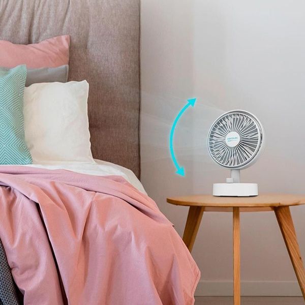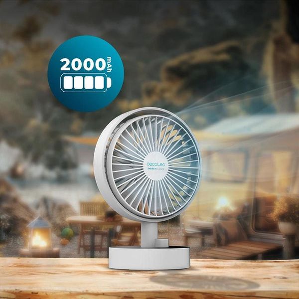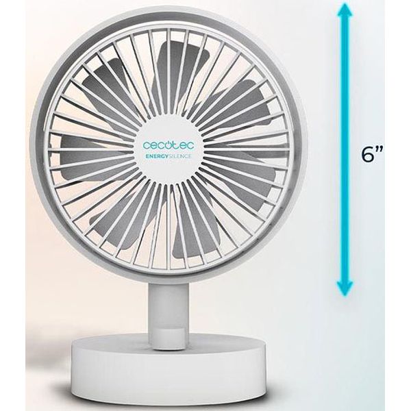 Ο ανεμιστήρας Energy Silence 2000 Portable της Cecotec διαθέτει μπαταρία 2000 mAh και διάμετρο 15 cm, προσφέροντας ευελιξία με ρυθμιζόμενη ταχύτητα μέσω διακόπτη. Τα 7 αεροδυναμικά σχεδιασμένα πτερύγια εξασφαλίζουν εξαιρετικά αθόρυβη λειτουργία, ενώ η δυνατότητα ρύθμισης της γωνίας κλίσης και περιστροφής του ανεμιστήρα επιτρέπει μεγαλύτερη κάλυψη του χώρου. Το πλέγμα ασφαλείας προστατεύει από την πρόσβαση στα πτερύγια και η σταθερή βάση εξασφαλίζει σταθερότητα κατά τη χρήση.