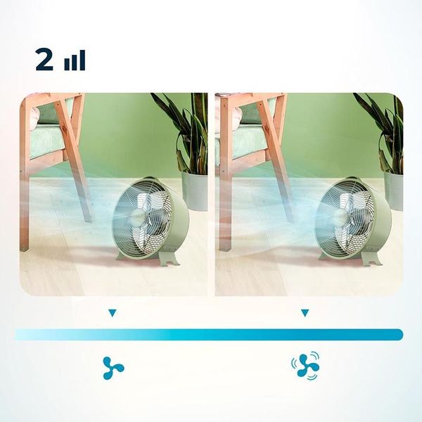 Ο επιτραπέχιος ανεμιστήρας Energy Silence 400 Retro Desk Green της Cecotec συνδυάζει κλασικό ρετρό σχέδιο με σύγχρονες τεχνολογίες, προσφέροντας ένα κύμα δροσιάς σε κάθε χώρο. Με ισχύ 25 W, διάμετρο 20 cm, 2 ταχύτητες και 4 πτερύγια αεροδυναμικού σχεδιασμού για αθόρυβη και αποτελεσματική κυκλοφορία του αέρα, θα αποτελέσει την τέλεια πρόταση του καλοκαιριού. Ο κομψός του ρετρό σχεδιασμός και το σταθερό πλέγμα ασφαλείας προσδίδουν μια αίσθηση κλασικής κομψότητας, ενώ η σταθερή βάση εξασφαλίζει προστασία και σταθερότητα.