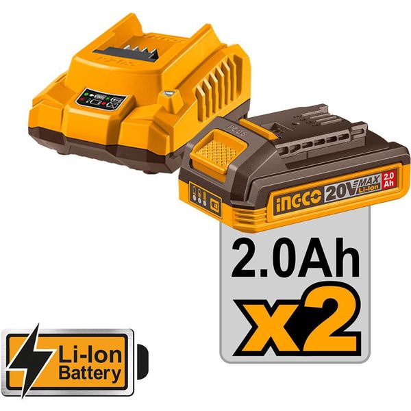 Περιεχόμενα συσκευασίας: 1x Φορτιστής (FCLI2001E), 2x Μπαταρίες 20V 2.0Ah Li-Ion (FBLI2001), 47x Εξαρτήματα, 3x Καρυδάκια (17-19-21mm), Πλαστική βαλίτσα