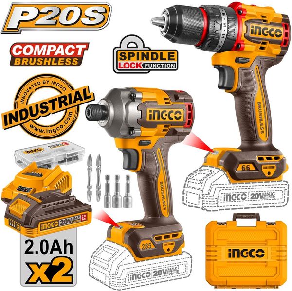 ΕΡΓΑΛΕΙΑ COMPACT ΜΠΑΤΑΡΙΑΣ 20V LI-ION ΣΕΤ 2 ΤΕΜ. INGCO CKLI20277E (TLS.391690)