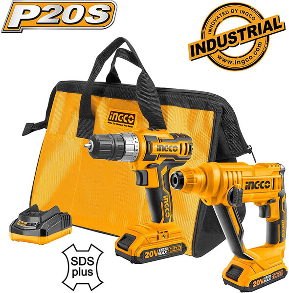 Εργαλεία Μπαταρίας 20V Li-Ion Σετ 2 τεμ. Δραπανοκατσάβιδο Μπαταρίας: Ταχύτητα χωρίς φορτίο: 0-400/0-1500rpm.Ροπή: 45 Nm.Ρυθμίσεις ροπής: 15+1.Υποδοχή τσοκ: 0.8-10 mm.Πιστολέτο Περιστροφικό Κρουστικό Μπαταρίας: Ταχύτητα χωρίς φορτίο: 0-900 rpm.Κρούσεις: 0-5100bpm.Κρουστική ισχύς: 1.5J.Τσοκ: SDS plus.Μέγεθος τρυπανιού: έως 13mm.Τάση: 20V.Led λάμπα εργασίας: Ναι.Led ένδειξη κατάστασης μπαταρίας: Ναι.Περιεχόμενα συσκευασίας: 1 τεμ. Φορτιστής 1 ώρας (2.0Ah) / 2 ώρων (4.0Ah), 2 τεμ. Μπαταρίες 20V 2.0Ah Li-Ion, Υφασμάτινη τσάντα μεταφοράς.Εγγύηση: 2 χρόνια.