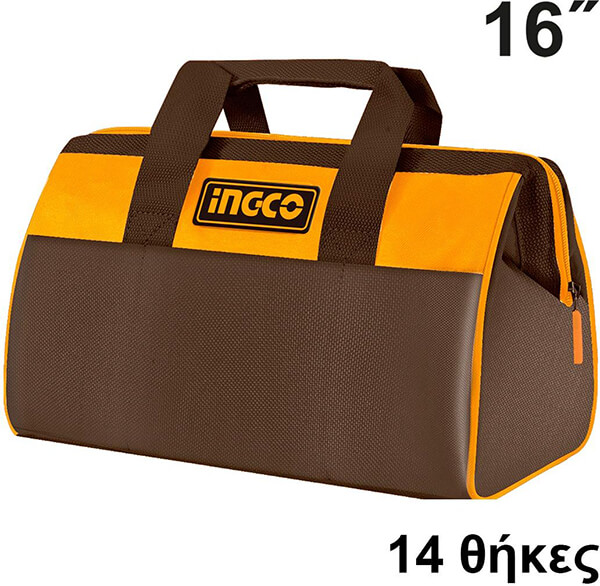Εργαλειοθήκη Τσάντα 16''. -Άκαμπτο πλαίσιο για εύκολο άνοιγμα. -8 Εσωτερικές θήκες σε έναν ενιαίο χώρο. -Εξωτερικά 6 θήκες. -Ενισχυμένος πλαστικός πάτος. Χαρακτηριστικά Μέγεθος: 41 x 29 x 21 cm.Υλικό: Ύφασμα με 600D υψηλής ανθεκτικότητας.Μήκος: 406 mm (16'').Βάρος: 0.75 Kg.Εγγύηση: 2 χρόνια.