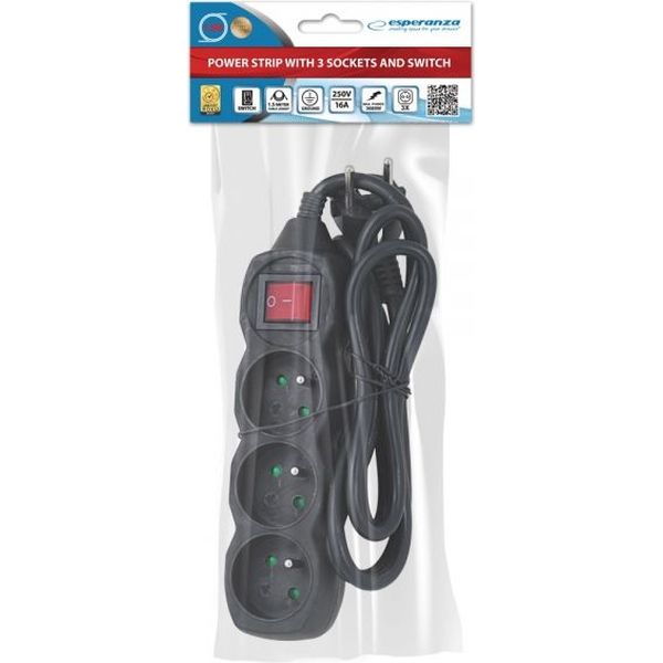 ESPERANZA ELK210K POWER STRIP 3 ΜΠΡΙΖΕΣ ΜΕ ΔΙΑΚΟΠΤΗ 1.5M BLACK PER.251564 ESPERANZA ESPERANZA ΗΛΕΚΤΡΙΚΑ