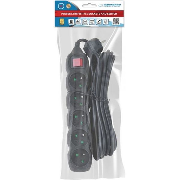 ESPERANZA ELK216K POWER STRIP 5 ΜΠΡΙΖΕΣ ΜΕ ΔΙΑΚΟΠΤΗ 5M BLACK