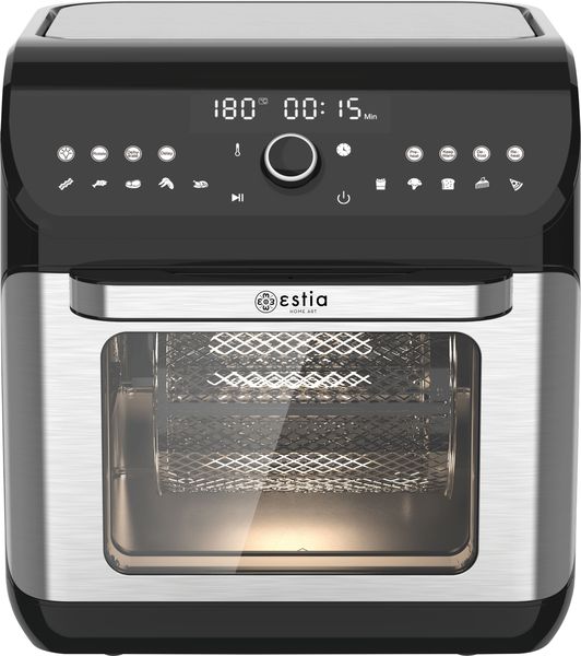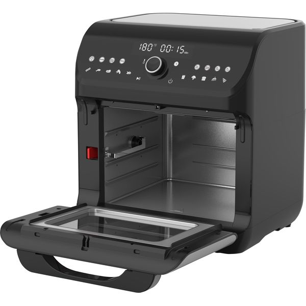 Η φριτέζα αέρος Flexi Chef 06-26653 προσφέρει απόλυτη ευελιξία στο μαγείρεμα, συνδυάζοντας φριτέζα αέρος και φουρνάκι σε μία συσκευή. Με ισχύ 1500W και μεγάλη χωρητικότητα 12 λίτρων, σας επιτρέπει να προετοιμάζετε γεύματα εύκολα και υγιεινά. Διαθέτει 4 διαφορετικές λειτουργίες φριτέζα αέρος, αποξήρανση, ξεπάγωμα και ψήσιμο, ώστε να καλύψει κάθε ανάγκη σας στην κουζίνα. Mοντέρνος σχεδιασμός με μαύρο χρώμα , προσδίδει κομψότητα στον χώρο σας. Το διπλό πυράντοχο γυαλί εξασφαλίζει ασφάλεια, ενώ ο εσωτερικός φωτισμός σας επιτρέπει να παρακολουθείτε το μαγείρεμα. Περιλαμβάνει δύο διάτρητες σχάρες ψησίματος, ένα ομοιόμορφα περιστρεφόμενο καλάθι τηγανίσματος για ομοιόμορφο, τραγανό αποτέλεσμα στα φαγητά σας και μια περιστρεφόμενη σούβλα για μεγάλα κομμάτια κρέατος,, δίσκο για ψίχουλα και σχάρα, κάνοντας το μαγείρεμα πιο εύκολο και πρακτικό. - Τύπος: Φριτέζα αέρος - φουρνάκι.