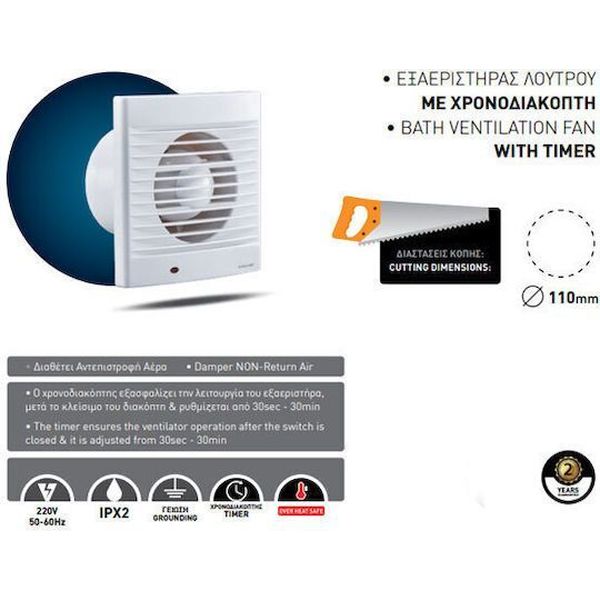 EUROLAMP ΕΞΑΕΡΙΣΤΗΡΑΣ ΛΟΥΤΡΟΥ ΜΕ ΧΡΟΝΟΔΙΑΚΟΠΤΗ Φ10 12W 220V ΛΕΥΚΟ 147-33242