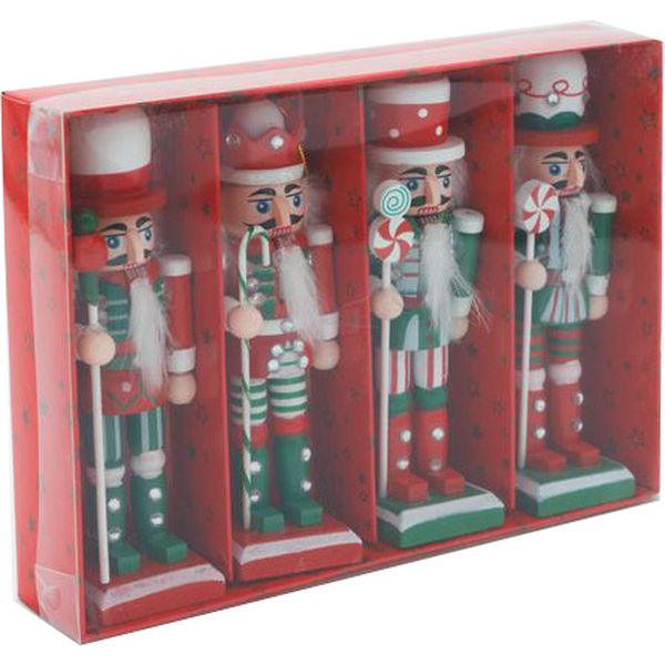 Το σετ EUROLAMP Καρυοθραύστης σε κόκκινο, πράσινο και λευκό χρώμα αποτελεί μια όμορφη, διακοσμητική και συλλεκτική επιλογή για κάθε σπίτι ή γιορτινή διακόσμηση. Κατασκευασμένο από ξύλο υψηλής ποιότητας, κάθε καρυοθραύστης έχει διαστάσεις 5x13 cm και προσφέρει σταθερότητα και αντοχή. Το σετ περιλαμβάνει 4 τεμάχια, το καθένα με προσεγμένη βαφή και λεπτομέρειες που αποδίδουν το κλασικό χριστουγεννιάτικο στυλ, ιδανικό για επιτραπέζια ή ράφια διακόσμηση, αλλά και για συλλεκτικούς σκοπούς.