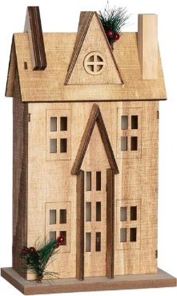 EUROLAMP ΞΥΛΙΝΟ ΣΠΙΤΑΚΙ ΦΩΤΙΖΟΜΕΝΟ 3 LED 5MM ΜΠΑΤΑΡΙΑΣ ΘΕΡΜΟ ΛΕΥΚΟ 17X11X31CM IP20 600-45296 (PER.270088)