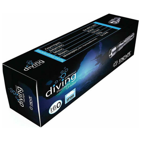 Φακός κατάδυσης LED κατασκευασμένος από αλουμίνιο υψηλής ποιότητας, με φωτεινότητα 160 lm, για βάθος έως 10 μέτρα. Διαθέτει κορδόνι για να μπορείτε να τον περνάτε πάνω σας. Ισχύς: 5W.Λυχνία: XPG Led.Φωτεινότητα: 160 lm.Μπαταρίες: 3x ΑAA (Δεν περιλαμβάνονται).Διάμετρος: 35 mm.Μήκος: 132 mm.Μέγιστο Βάθος: 10 m.Βάρος: 168 gr.Χρώμα: Γκρι.Εγγύηση: 2 χρόνια.