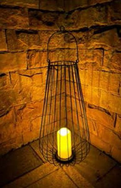 Επιτραπέζιο διακοσμητικό φωτιστικό φανάρι από μαύρο μέταλλο με μπαταρίες και εφέ αναμμένης φλόγας.Διαθέτει προστασία από υγρασία και βαθμό στεγανότητας IP44, κατάλληλο για τοποθέτηση σε εσωτερικούς και εξωτερικούς χώρους.