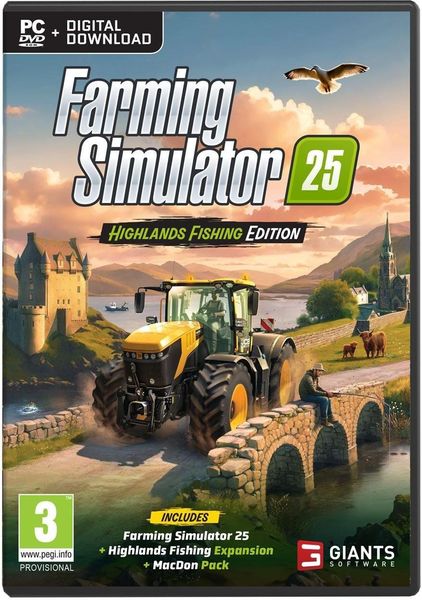 GAMES Φτιάξτε μια φάρμα κατά μήκος των ελικοειδών ποταμών και των ιστορικών σιλό σιτηρών της Βόρειας Αμερικής, περιτριγυρισμένη από λίμνες στην Κεντρική Ευρώπη, σε ένα καταπράσινο τοπίο της Ανατολικής Ασίας γεμάτο ορυζώνες ή στην πόλη Kinlaig, εμπνευσμένη από τη Σκωτία, έναν καταπράσινο παράδεισο με καταπράσινους λόφους και ανοιχτά νερά! Το Farming Simulator 25 Highlands Fishing Edition συνδυάζει το φημισμένο βασικό παιχνίδι και την επέκταση Highlands Fishing. Απολαύστε 26 καλλιέργειες, 4 χάρτες και περίπου 400 μηχανήματα με πάνω από 150 πραγματικές μάρκες. Σε όλα αυτά εκτός της γεωργίας, προσθέστε υδατοκαλλιέργειες, δασοκομία και κτηνοτροφία.