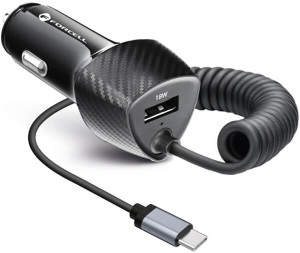> > > FORCELL CARBON CAR CHARGER USB QC 3.0 18W + CABLE FOR TYPE C 3.0 PD20W CC50-1AC BLACK (TOTAL 38W)