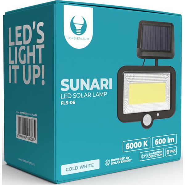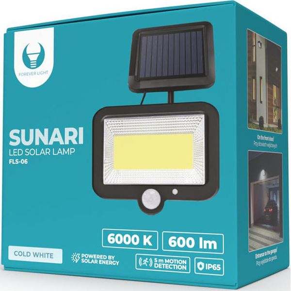 > FOREVER LIGHT SOLAR LED LAMP SUNARI FLS-06 COB PIR 8W 600LM 6000K 1800MAH LI-ION