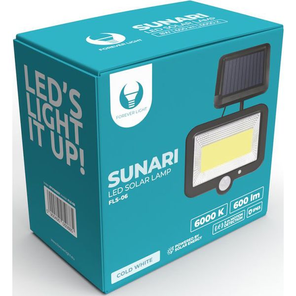 FOREVER LIGHT SOLAR LED LAMP SUNARI FLS-06 COB PIR 8W 600LM 6000K 1800MAH LI-ION