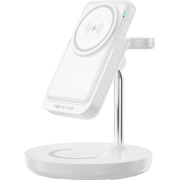 FOREVER MACS-100 MAGNETIC WIRELESS CHARGING STATION WITH POWER BANK WHITE 5IN1 (TEL.234860)