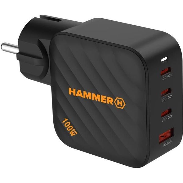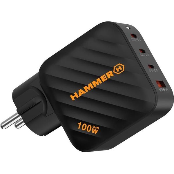ΦΟΡΤΙΣΤΗΣ ΤΑΞΙΔΙΟΥ HAMMER RAPIDCHARGE QUAD USB-A 3XUSB-C PD 100W BLACK TEL.235040 HAMMER HAMMER ΦΟΡΤΙΣΤΕΣ