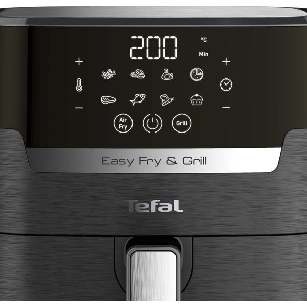 Φριτέζα αέρος της Tefal, χωρίς λάδι για υγιεινό μαγείρεμα. Απολαύστε υγιεινό μαγείρεμα με δύο συσκευές σε μία! Η Easy Fry & Grill Digital συνδυάζει φριτέζα αέρα και γκριλ για υγιεινό τηγάνισμα με ελάχιστο έως καθόλου λάδι, μαζί με άψογο ψήσιμο στη σχάρα από την άνεση της κουζίνας σας. -Τα 8 αυτόματα προγράμματά της κάνουν τα τέλεια αποτελέσματα παιχνιδάκι, ενώ η επιλογή για σνακ θα σας εξασφαλίσει νόστιμα σπιτικά σνακ με μεγάλη ευκολία. -Αποτελεί την τέλεια εναλλακτική για τον συμβατικό φούρνο, αφού εγγυάται γρήγορα αποτελέσματα καταναλώνοντας λιγότερη ενέργεια έως και 70% (σε σύγκριση με παραδοσιακό φούρνο ενεργειακής κλάσης Α. Δοκιμές που πραγματοποιήθηκαν το 2022 με κατεψυγμένες πατάτες). -H αποκλειστική διπλή της τεχνολογία προσφέρει ταυτόχρονα και γκριλ με σχάρα από χυτοπρεσαριστό αλουμίνιο, για μαλακό, ζουμερό κρέας και ψημένα στην εντέλεια λαχανικά. -Eξασφαλίζει τραγανά, χρυσαφένια αποτελέσματα σε όλες τις αγαπημένες σας τηγανητές λιχουδιές με την προσθήκη ελάχιστου έως καθόλου λαδιού. -Με 8 αυτόματα προγράμματα, μια ψηφιακή οθόνη ελέγχου και μια βολική λειτουργία χρονοδιακόπτη, είναι εύκολο να εξασφαλίσετε ιδανικά αποτελέσματα. -Επιπλέον με την λειτουργία ξήρανσης τροφίμων θα φτιάξετε νόστιμα υγιεινά σνακ από τη δική σας κουζίνα, όπως αποξηραμένα φρούτα ή λαχανικά. -Xάρη στην XL χωρητικότητά της, η φριτέζα χωρίς λάδι Easy Fry & Grill Digital καλύπτει τις ανάγκες όλης της οικογένειας. Χαρακτηριστικά Τύπος: Φριτέζα αέρος + grill.Ισχύς: 1550 W.Καπάκι: Πλήρως αδιαφανές.Αφαιρούμενος κάδος: PTFE.Χρώματα: Μαύρο.Χωρητικότητα: 4.2 L.Ρύθμιση θερμοκρασίας: 80 °C - 200 °C.Χαρακτηριστικά: 8 αυτόματα προγράμματα, διαισθητικός ψηφιακός πίνακας ελέγχου, βολικό χρονόμετρο, λειτουργία στεγνώματος, πλάκα γκριλ από χυτό αλουμίνιο.Διαστάσεις: 36.1 x 27 x 32.4 cm.Χρώμα: Μαύρος.Εγγύηση: 2 χρόνια.