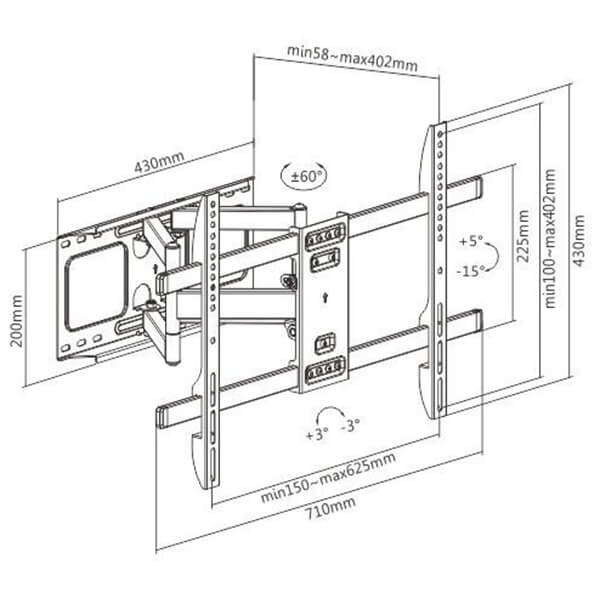Τύπος: Πλήρως ρυθμιζόμενη βάση τοίχου για τηλεοράσεις LCD/LED.