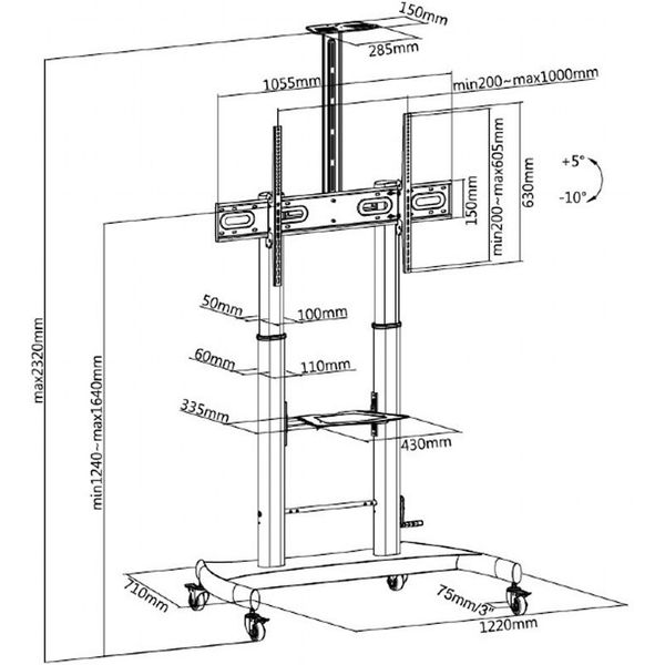 > > > GEMBIRD HEIGHT ADJUSTABLE TV FLOOR STAND WITH CASTER WHEELS 60' - 100' TVS-100T-02