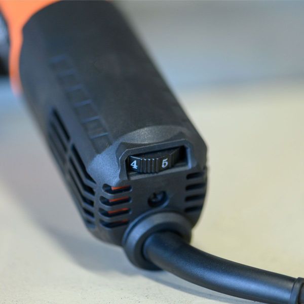 Ρυθμιζόμενη ταχύτητα λειτουργίας Ο ενσωματωμένος ρυθμιστής στροφών επιτρέπει την προσαρμογή της ταχύτητας από 3000 έως 12000 rpm, επιτρέποντας την ιδανική ρύθμιση για διαφορετικά υλικά και εφαρμογές κοπής ή λείανσης.
