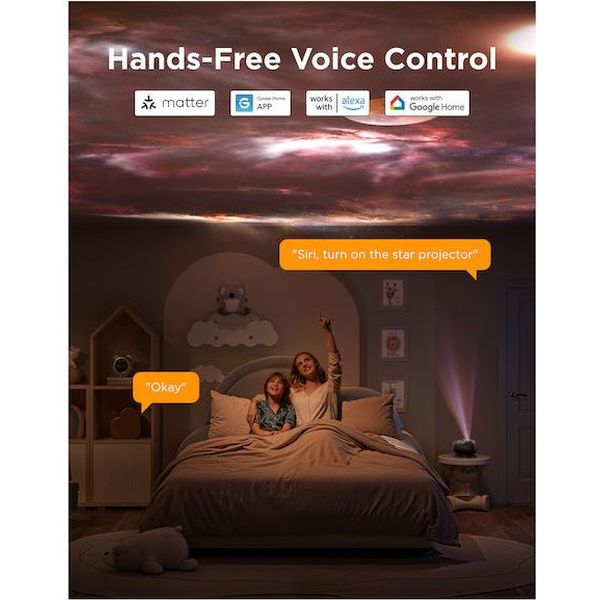 Έξυπνος και εύκολος έλεγχος Ο προβολέας υποστηρίζει πολλαπλές μεθόδους ελέγχου μέσω εφαρμογής, φωνητικών εντολών ή τηλεχειριστηρίου, επιτρέποντας εύκολη προσαρμογή της ατμόσφαιρας σύμφωνα με τις προτιμήσεις σας.