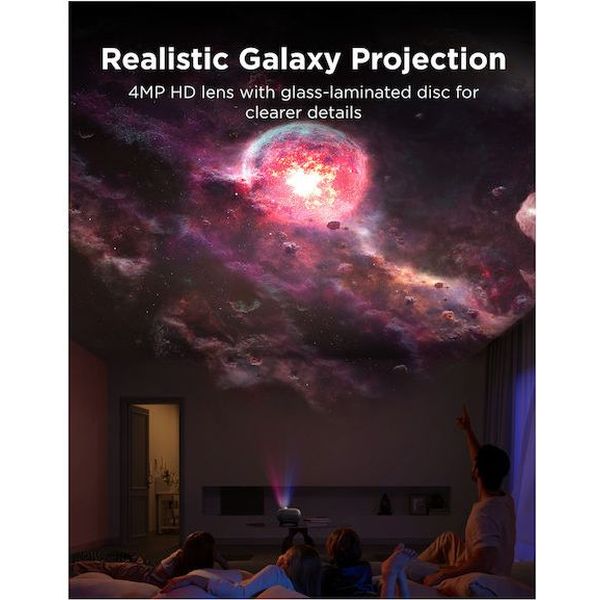 Ρεαλιστική κοσμική προβολή υψηλής ευκρίνειας Ο φακός υπερυψηλής ανάλυσης 4MP με γυάλινη επίστρωση προσφέρει αυξημένη μετάδοση φωτός και εντυπωσιακή ευκρίνεια. Τα αστέρια και τα νεφελώματα αποδίδονται με ρεαλιστικές λεπτομέρειες, μετατρέποντας το δωμάτιό σας σε έναν καθηλωτικό έναστρο ουρανό.