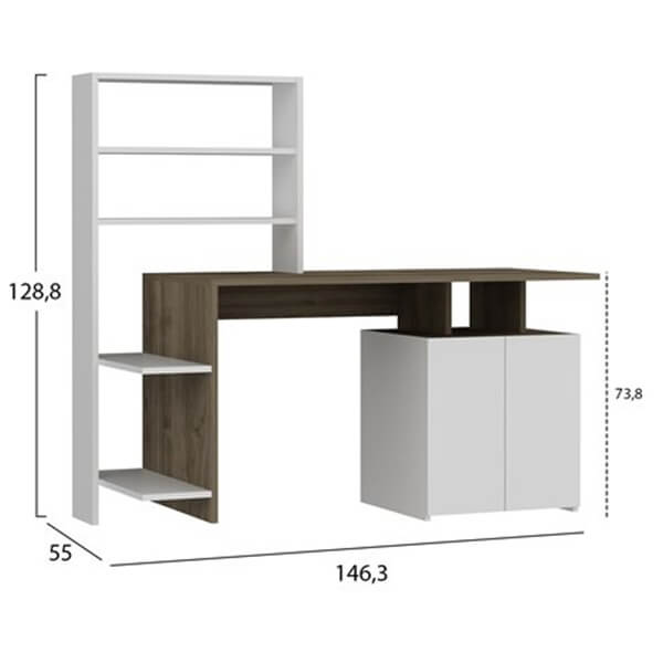 ΓΡΑΦΕΙΟ ΜΕ ΒΙΒΛΙΟΘΗΚΗ ROCHELL ΜΕΛΑΜΙΝΗ OLIVE GREY ΛΕΥΚΟ 146,3X55X128,8ΥΕΚ.HM8886.11