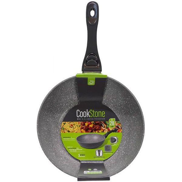 Το αντικολλητικό τηγάνι Wok GUSTO CASA COOKSTONE 28cm είναι ιδανικό για δυναμικό και γρήγορο μαγείρεμα, προσφέροντας άριστα αποτελέσματα σε stir-fry, λαχανικά, κρέας και ασιατικές συνταγές. Η ευρύχωρη διάμετρός του το καθιστά κατάλληλο για μεγαλύτερες ποσότητες και οικογενειακά γεύματα. Η κατασκευή από χυτό αλουμίνιο εξασφαλίζει ανθεκτικότητα και ομοιόμορφη κατανομή της θερμότητας, ενώ παραμένει ελαφρύ και εύχρηστο. Η τριπλή αντικολλητική επίστρωση πάχους 2,7 mm με stone design επιτρέπει υγιεινό μαγείρεμα με λιγότερα λιπαρά και εύκολο καθάρισμα. Η εργονομική λαβή είναι απαλή στην αφή και αντιολισθητική, προσφέροντας σταθερό κράτημα και άνετο χειρισμό ακόμη και σε έντονο μαγείρεμα. Η ενισχυμένη βάση πάχους 3,5 mm συμβάλλει στη σταθερότητα και στην αποδοτική μεταφορά θερμότητας. Το wok είναι κατάλληλο για όλες τις εστίες, συμπεριλαμβανομένων των επαγωγικών, και πλένεται στο πλυντήριο πιάτων, προσφέροντας πρακτικότητα και ευκολία στην καθημερινή χρήση. - Διάμετρος: 28 cm