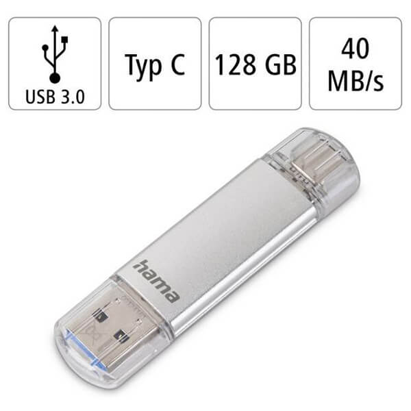 Το Hama C-Laeta 128GB είναι ένα ευέλικτο USB stick που συνδυάζει συνδεσιμότητα και υψηλή χωρητικότητα, ιδανικό για όσους χρειάζονται εύκολη μεταφορά δεδομένων μεταξύ διαφορετικών συσκευών. Χάρη στη διπλή σύνδεση USB-A και USB-C, είναι απόλυτα συμβατό με laptops, desktops, smartphones και tablets, προσφέροντας OTG λειτουργία για άμεση χρήση σε φορητές συσκευές. Με ταχύτητα ανάγνωσης έως 40MB/s μέσω USB 3.0/3.1, μπορείτε να αποθηκεύετε και να αναπαράγετε αρχεία, ακόμα και ταινίες σε FullHD, χωρίς καθυστερήσεις. Το κομψό ασημί φινίρισμα και οι μικρές διαστάσεις του το καθιστούν ιδανικό για καθημερινή χρήση, ενώ η μεγάλη διάρκεια εγγύησης το καθιστά μια αξιόπιστη λύση για προσωπικά και επαγγελματικά δεδομένα. - Χωρητικότητα: 128GB