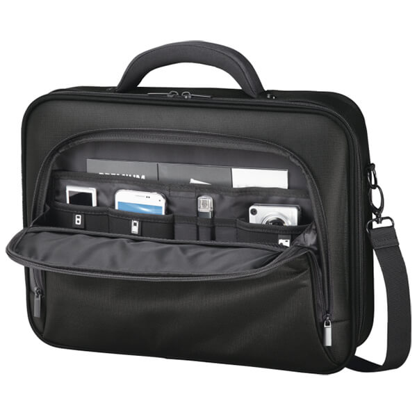 Τσάντα για μεταφορά φορητού υπολογιστή μεγέθους έως 15.6 ίντσες (40 cm) με ρυθμιζόμενο εσωτερικό διαχωριστικό ανάλογα με το μέγεθος του φορητού υπολογιστή. Μεγάλη μπροστινή τσέπη για πρόσθετα αξεσουάρ ή προσωπικά αντικείμενα και εσωτερική τσέπη εγγράφων. Χαρακτηριστικά Μέγιστο μέγεθος λάπτοπ: 40 cm (15.6").Υλικό: πολυεστέρας.Εξωτερικές διαστάσεις: 47 x 7 x 41 cm.Εσωτερικές διαστάσεις: 39 x 5 x 30 cm.Βάρος: 960 g.Χρώμα: Μαύρο.Εγγύηση: 2 χρόνια. DOA 7 ημερών