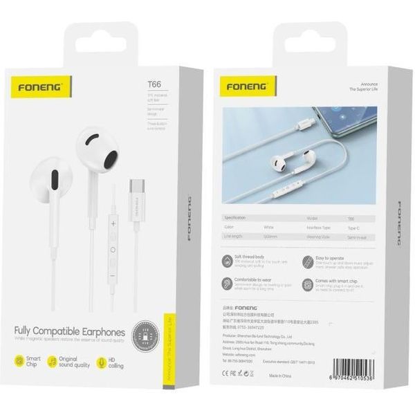 hands free stereo foneng t66 usb c white extra photo 1  hands free stereo foneng t66 usb c white extra photo 2  hands free stereo foneng t66 usb c white extra photo 3