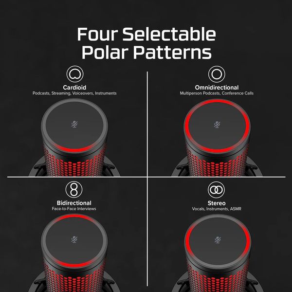 Το HyperX QuadCast 2 είναι το νέο στάνταρ για επαγγελματικά μικρόφωνα, ιδανικό για streamers, gamers και content creators. Διατηρεί τα χαρακτηριστικά που έκαναν το αρχικό μοντέλο αγαπητό, ενώ προσφέρει καινοτόμες προσθήκες σε έναν νέο, κομψό σχεδιασμό με πλήρη αλουμινένιο περίβλημα. - Το QuadCast 2 παρέχει ηχογράφηση σε ανάλυση 24-bit και 96kHz για επαγγελματική ποιότητα ήχου. Διαθέτει αισθητήρα tap-to-mute, ώστε να αποφεύγονται τα ατυχήματα στον αέρα και δυνατότητα προσαρμογής μέσω του ρυθμιστή πολικότητας, της ενσωματωμένης οθόνης LED και της αμφίδρομης αντιστοίχισης φωτισμού HyperX Red για τέλεια εμφάνιση. - Η δυνατότητα να ελέγχετε την ένταση του μικροφώνου, την ένταση του ήχου, την παρακολούθηση και την επιλογή πολικών προτύπων μέσω του εύχρηστου ρυθμιστή, ενσωματώνει την πιο προηγμένη τεχνολογία για το streaming ή τις ηχογραφήσεις σας.