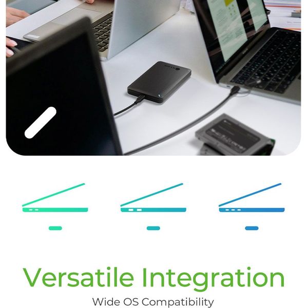 Υποστηρίζει δίσκους 2.5" HDD / SSD με ύψος έως 9.5mm, ενώ η συμβατότητα με υπολογιστές, laptops, smartphones και tablets το καθιστά ιδανικό για γραφείο, σπίτι ή ταξίδι.