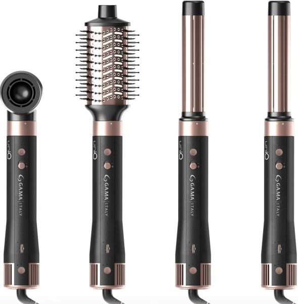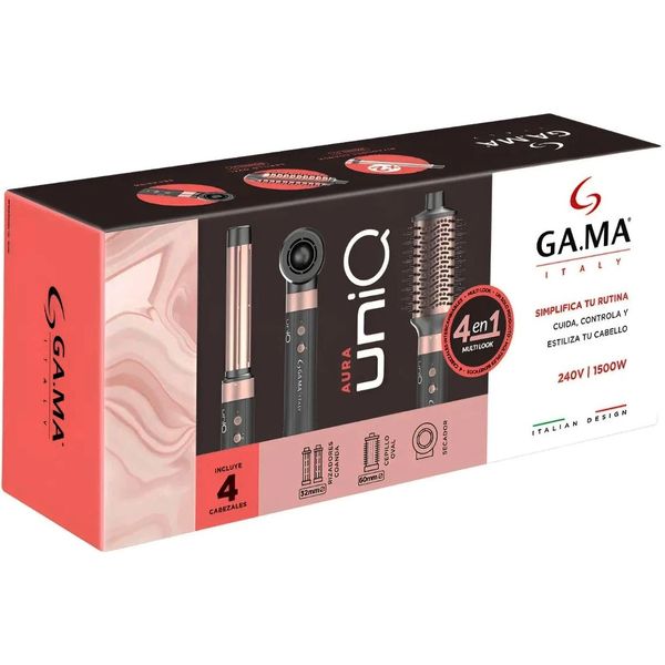 Το UniQ Aura της GAMA είναι ένα ισχυρό επαγγελματικό multistyler 4-σε-1, σχεδιασμένο για απόλυτη ευελιξία στο styling, τόσο σε στεγνά όσο και σε βρεγμένα μαλλιά. Με ισχύ 1500 W, τεχνολογία Coanda για φυσικούς κυματισμούς και μπούκλες, brushless μοτέρ 100.000 rpm για γρήγορο και αθόρυβο στέγνωμα, καθώς και 3 ρυθμίσεις θερμοκρασίας και 3 ταχύτητες, προσφέρει πλήρη έλεγχο σε κάθε χτένισμα. Διαθέτει 4 ανταλλακτικές κεφαλές, όπως 2 κεφαλές αυτόματης περιτύλιξης με αέρα για μπούκλες, κεφαλή για στέγνωμα και οβάλ βούρτσα 60 mm που τιθασεύει, λειαίνει και χαρίζει όγκο με ένα μόνο πέρασμα. Με τεχνολογία ιόντων τουρμαλίνης συμβάλλει στη μείωση του φριζαρίσματος και στη διατήρηση της φυσικής υγρασίας των μαλλιών. Ο ελαφρύς, εργονομικός σχεδιασμός, η αθόρυβη λειτουργία και η λειτουργία αυτοκαθαρισμού ολοκληρώνουν μια ολοκληρωμένη εμπειρία styling υψηλού επιπέδου.