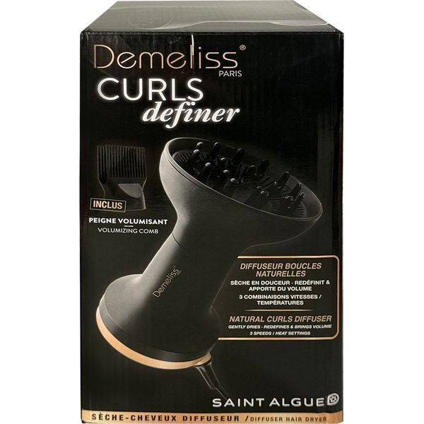 Η ηλεκτρική φυσούνα θερμού αέρα DEMELISS Curls Definer συνδυάζει δύναμη 2000 W και ευκολία χαρίζοντας επαγγελματικό αποτέλεσμα από το σπίτι. Συνοδεύεται από αποσπώμενη φυσούνα που στεγνώνει και αναδιαμορφώνει τις μπούκλες διατηρώντας τον φυσικό τους όγκο και αποσπώμενη χτένα που προσθέτει όγκο στις ρίζες, ξεμπερδεύει και προετοιμάζει τα μαλλιά για ίσιωμα. Διαθέτει τρία επίπεδα λειτουργίας για απαλό στέγνωμα μέχρι γρήγορο και αποτελεσματικό styling, ενώ χάρη στον εργονομικό σχεδιασμό, το καλώδιο μήκους 1.8 m και το χαμηλό βάρος, προσφέρει άνεση και ευελιξία σε κάθε χρήση.