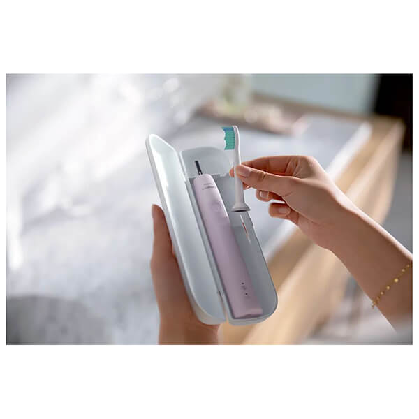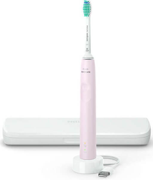 Philips Sonicare 3100 Series - Ηλεκτρική οδοντόβουρτσα Sonic. Η τεχνολογία Sonic σε συνδυασμό με το σύστημα βουρτσίσματος αφαιρεί με ήπιο τρόπο την πλάκα έως 3 φορές πιο αποτελεσματικά από μια συμβατική οδοντόβουρτσα. Η μοναδική τεχνολογία σάς προσφέρει ισχυρό, αλλά απαλό καθαρισμό Οι ισχυρές δονήσεις στις τρίχες οδηγούν τις μικροφυσαλίδες βαθιά ανάμεσα στα δόντια σας και κατά μήκος της γραμμής των ούλων σας για μια αναζωογονητική εμπειρία. Μόλις 2 λεπτά χρήσης ισοδυναμούν με δύο μήνες χειροκίνητου βουρτσίσματος. 31.000 κινήσεις βουρτσίσματος το λεπτό καθαρίζουν τα δόντια σας, καταστρέφουν την πλάκα και την απομακρύνουν προσφέροντάς σας εξαιρετικό καθημερινό καθαρισμό. Εως και 3 φορές πιο αποτελεσματική αφαίρεση της πλάκας συγκριτικά με μια συμβατική οδοντόβουρτσα Η ηλεκτρική οδοντόβουρτσα Sonicare με προηγμένη τεχνολογία Sonic είναι κλινικά αποδεδειγμένο ότι αφαιρεί την πλάκα έως και 3 φορές πιο αποτελεσματικά σε σχέση με τις συμβατικές οδοντόβουρτσες. Αφαιρεί την πλάκα από τα δόντια και κατά μήκος της γραμμής των ούλων, ενώ παράλληλα προστατεύει τα ούλα σας. Ο ενσωματωμένος αισθητήρας πίεσης προστατεύει τα δόντια και τα ούλα σας Ο ενσωματωμένος αισθητήρας πίεσης ανιχνεύει αυτόματα την πίεση που ασκείτε, σας προειδοποιεί και μειώνει αυτόματα τις δονήσεις της οδοντόβουρτσας, για την προστασία των ούλων σας. Η οδοντόβουρτσα θα παράγει έναν εντυπωσιακό ήχο ως υπενθύμιση για να εκτονωθεί η πίεση. Βελτιστοποιήστε το βούρτσισμα με τα SmarTimer και QuadPacer Το SmarTimer 2 λεπτών και το QuadPacer 30 δευτερολέπτων σάς καθοδηγούν να βουρτσίζετε για το συνιστώμενο χρονικό διάστημα σε όλες τις περιοχές του στόματος, ώστε να εξασφαλίζεται ο πλήρης καθαρισμός. Θα ξέρετε πάντα πότε πρέπει να αντικαταστήσετε τις κεφαλές βουρτσίσματος Όλες οι κεφαλές βουρτσίσματος φθείρονται με την πάροδο του χρόνου, οπότε πρέπει να παρατηρείτε την κεφαλή που χρησιμοποιείτε, για να βεβαιωθείτε ότι συνεχίζει να καθαρίζει καλά τα δόντια σας. Η τεχνολογία BrushSync παρακολουθεί για πόσο διάστημα χρησιμοποιείτε την κεφαλή βουρτσίσματος και με πόση ένταση βουρτσίζετε τα δόντια σας. Όταν έρθει η ώρα να την αντικαταστήσετε, η υπενθύμιση αντικατάστασης BrushSync στη λαβή και ένα σύντομο ηχητικό σήμα θα σας ειδοποιήσουν. Εύκολη εκκίνηση για εύκολη μετάβαση Το πρόγραμμα εύκολης εκκίνησης Easy Start σάς δίνει την επιλογή σταδιακής, ήπιας αύξησης της ισχύος βουρτσίσματος τις πρώτες 14 φορές που θα χρησιμοποιήσετε τη νέα σας οδοντόβουρτσα. Κάνει τα ταξίδια ευκολότερα για εσάς Η εξαιρετικής ποιότητας θήκη μεταφοράς σάς επιτρέπει να αποθηκεύετε την οδοντόβουρτσά σας με υγιεινό τρόπο, ενώ με τη βάση φόρτισης USB μπορείτε να την έχετε πάντα φορτισμένη κατά τις μετακινήσεις σας. Μπορείτε λοιπόν να κερδίζετε δύο εβδομάδες κανονικής χρήσης με μία μόνο πλήρη φόρτιση και να χρησιμοποιείτε τον φορτιστή όταν κάνετε μεγαλύτερα ταξίδια. Τάση: DC 5V.Μπαταρία: Επαναφορτιζόμενη Ιόντων λιθίου.Χρόνος λειτουργίας: 14 ημέρες.Λαβή: Λεπτός εργονομικός σχεδιασμός, Σειρά 3100.Σύστημα κεφαλής βουρτσίσματος: Κεφαλές που κουμπώνουν εύκολα.Ταχύτητα: Έως και 31.000 κινήσεις βουρτσίσματος το λεπτόΚεφαλή βουρτσίσματος: 1 κανονική ProResults C1.Χρώμα: Τριανταφυλλί.Εγγύηση: 2 χρόνια.