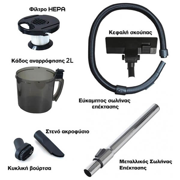 Ηλεκτρική σκούπα κυκλωνικής τεχνολογίας 2L, 700watt με φίλτρο HEPA και μεταλλικό σωλήνα HomeVero HV-CVM710. -Η εξαιρετικά αποδοτική σκούπα της HomeVero είναι εδώ για να εξαφανίσει όλη τη σκόνη και τη βρωμιά πανεύκολα, με ένα πέρασμα. -Το καινοτόμο σύστημα cyclone, που διαθέτει, αξιοποιώντας τη φυγόκεντρο δύναμη διαχωρίζει τη σκόνη από τον αέρα με τη χρήση κυλίνδρων και σπειροειδών διαδρόμων. Έτσι δε χρειάζεται σακούλα και ενώ η απόδοση της σκούπας παραμένει σταθερή ανεξάρτητα από το πόση σκόνη έχει μέσα της. Κι όταν το δοχείο γεμίσει, το αδειάζετε με μια απλή κίνηση και είναι ξανά έτοιμη για χρήση. -Διαθέτει πολυεπίπεδο σύστημα φιλτραρίσματος 5 στρωμάτων που την καθιστά ιδανική για όσους έχουν ευαισθησία στην σκόνη. -Το φίλτρο HEPA, που περιλαμβάνει η ηλεκτρική σκούπα, έχει πάρα πολύ καλή απόδοση, συγκρατώντας σχεδόν όλα τα μικροσωματίδια που βρίσκονται στον αέρα όπως σκόνη και αιωρούμενα σωματίδια. -Οι μεγάλοι τροχοί σε συνδυασμό με το μικρό της μέγεθος και βάρος, προσφέρουν ευκολία στον χειρισμό, ώστε να σκουπίζετε με άνεση ακόμη και τα πιο δυσπρόσιτα σημεία. -Αυτοματοποιήστε τις διαδικασίες και επιταχύνετε το καθάρισμα με το σύστημα εναλλαγής δαπέδου. -Περιλαμβάνει: Μεταλλικό κοντάρι, Πλενόμενο φίλτρο HEPA, Kάδος αναρρόφησης 2L, Κεφαλή σκούπας, Εύκαμπτο σωλήνα επέκτασης, Κυκλική βούρτσα, Στενό ακροφύσιο. Ισχύς: 700W.Χωρητικότητα: 2Lt.Επίπεδο θορύβου: 80 dB.Τάση: 220-240V, 50-60Hz.Βάρος: 2,8kg.Μήκος καλωδίου: 3,8 m.Εγγύηση: 2 χρόνια.
