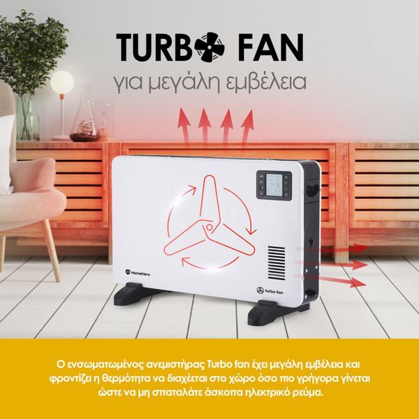 - Ενσωματωμένος ανεμιστήρας Turbo Fan για ταχύτερη θέρμανση