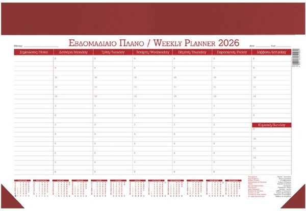 ΗΜΕΡΟΛΟΓΙΟ 2026 ΠΛΑΝΟ ΕΒΔΟΜΑΔΙΑΙΟ 28X42 ΚΟΚΚΙΝΟ (ANA.CAL1054)