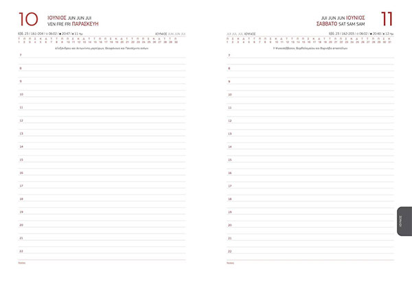 Σάββατο και Κυριακή σε ξεχωριστές σελίδες,Συνοπτικά ημερολόγια και πλάνα,Ανατολή - Δύση, φάσεις Σελήνης