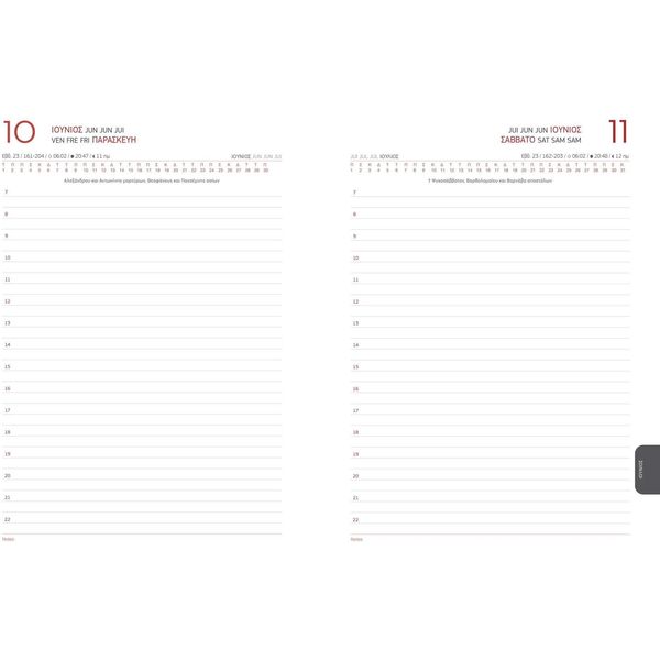 ΛΙΝΑΡΔΑΤΟΣ στην κατηγορία ΗΜΕΡΟΛΟΓΙΑ Ημερολόγιο με σκληρό εξώφυλλο και κάλυμμα από PVC. Διαθέτει τυπωμένο το έτος σε ασημοτυπία και μονόχρωμη εκτύπωση στο εσωτερικό σε λευκό χαρτί 70γρ. Περιλαμβάνει ξεχωριστές σελίδες για το Σάββατο και την Κυριακή, συνοπτικά ημερολόγια και πλάνα, παγκόσμιες ημέρες, εορτολόγιο, φάσεις Σελήνης, τηλεφωνικό ευρετήριο και χρήσιμες πληροφορίες.
