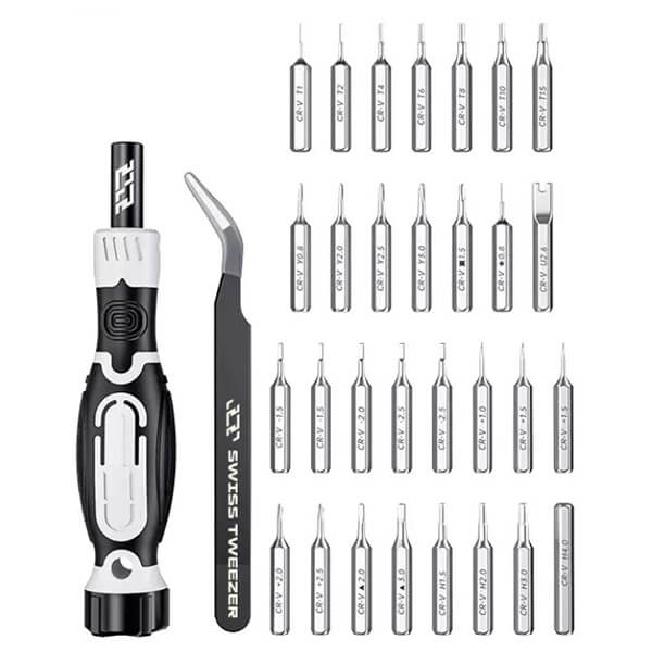 • Περιλαμβάνει: Screwdriver handle (magnetic connector), T2-15 tweezers.