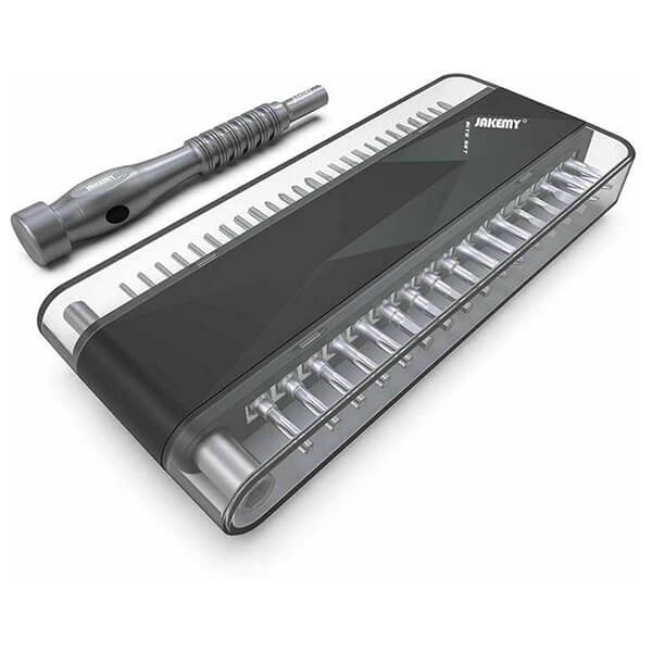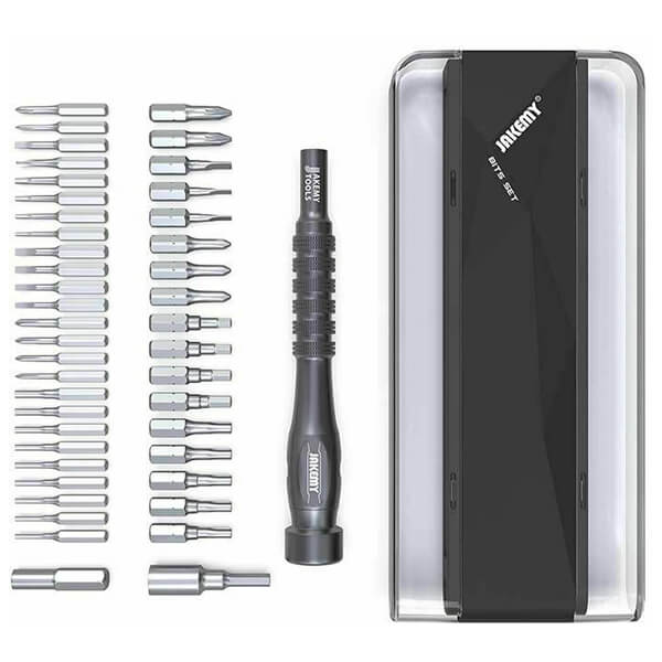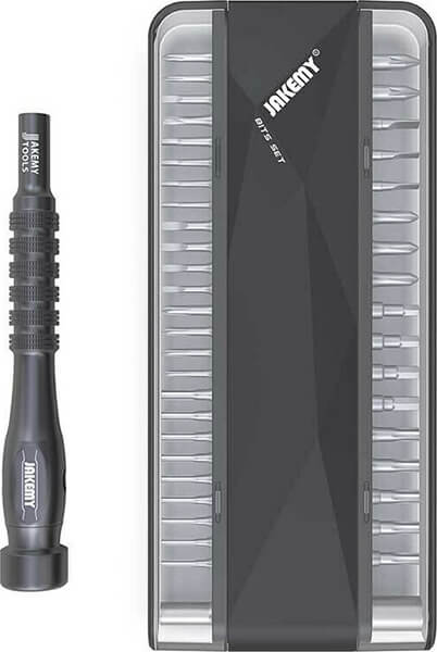 Σετ κατσαβίδι με μύτες της Jackemy για την συντήρηση και επισκευή ψηφιακών προϊόντων όπως λάπτοπ, κάμερες, κονσόλες, ρολόγια κτλ. Είναι εξοπλισμένο με αντιολισθητική λαβή και μαγνητική κεφαλή. Torx: T2 T3 T4 T5 T6 T7 T8 T9 T10 T15 T20 T25 T27 T30.Flat-head (Slotted): 1.0 1.5 2.0 2.5 3.0 4.0 5.0.Tri-wing: Y0.8 Y2.0.Phillips: 1.0 1.5 2.0 2.5 3.0 4.0 5.0.Triangle: 2.3.Stand off (Motherboard philips): 1.5.Pentagon (Pentalobe): 0.8 1.2 1.5 2.0.Hex: H2.0 H2.5 H3.0 H4.0.Pozidrive: Pz0 Pz1.Περιλαμβάνει: H6.3 transfer to H4 sockets, H4 transfer to H6.3 sockets.Τεμάχια: 41.Εγγύηση: 2 χρόνια.