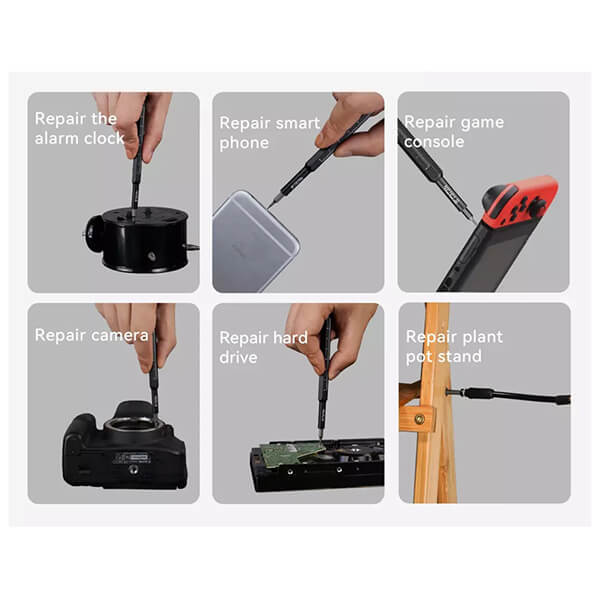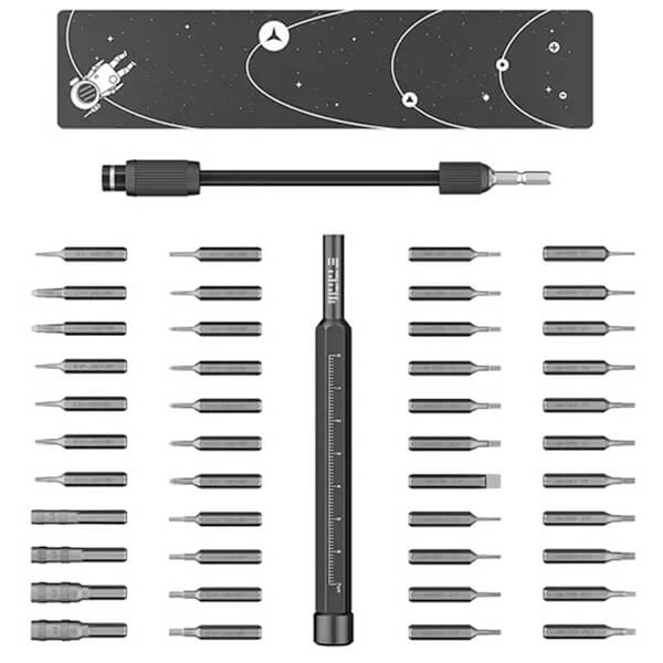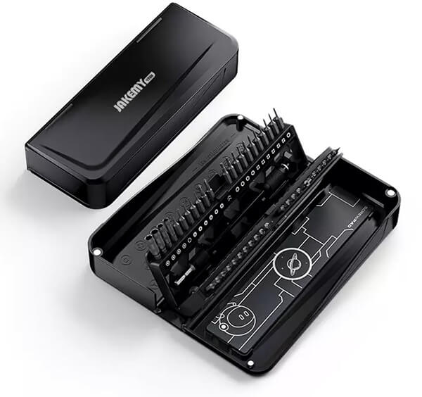 Σετ κατσαβιδιών της Jackemy το οποίο αποτελείται από κατσαβίδι, προέκταση, μαγνητικό φύλλο και 44 διαφορετικές μύτες κατσαβιδιού. -Το κατσαβίδι διαθέτει κυκλικό περιστρεφόμενο σύνδεσμο και στην επιφάνεια του είναι χαραγμένος χάρακας 0.7 cm. -Ολα τα περιεχόμενα του σετ είναι τοποθετημένα μέσα σε πλαστική κασετίνα, για την εύκολη τακτοποίηση και μεταφορά τους. -Τα εργαλεία Jakemy συνδυάζουν ποιοτική κατασκευή και εργονομικό σχεδιασμό, με την χρήση τους να προορίζεται είτε για επαγγελματικές είτε για ερασιτεχνικές εργασίες. -Το σετ περιλαμβάνει: Μαγνητικό κατσαβίδι, 125mm, Εύκαμπτη προέκταση, 130mm, Μαγνητικό φύλλο, 44x μύτες κατσαβιδιού, Πλαστική κασετίνα. Χαρακτηριστικά Hex socket: M2.5, M5.0, G3.8, G4.5.Flat-head (Slotted): 1.0, 1.5, 2.0, 2.5, 3.0, 3.5, 4.0.Pentagon: 0.8, 1.2, 1.5, 2.0.Torx: T1 T2 T3 T4 T5 T6 T8 T10 T15.Triangle: 2.0, 2.3, 2.6, 3.0.Stand off: 1.5.Tri-wing: Y0.8, Y2.0, Y2.5, Y3.0.Pozidrive: PZ1 PZ2.Hex: H0.9 H1.5 H2.5 H3.0.Phillips: 1.0, 1.5, 2.0, 2.5, 3.0, 3.5.SIM ejector: SIM0.8.Περιλαμβάνει: Screwdriver handle, 130mm Soft extension bar.Υλικό μυτών: CR-V.Διαστάσεις: 180x75x35 mm.Τεμάχια: 47.Εγγύηση: 2 χρόνια.