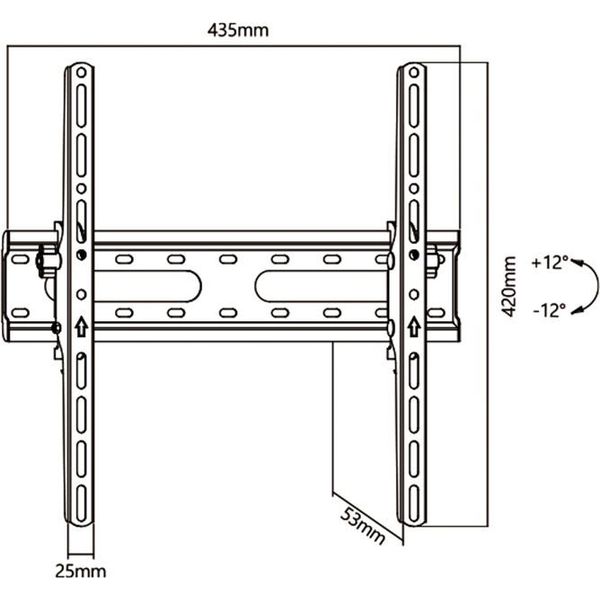 Διαστάσεις VESA: έως 400x400 χιλ. Συμβατά μεγέθη οθόνης: 23 έως 55 ίντσες / 58,42 έως 139,7 cm. Μέγιστο φορτίο: 45 κιλά. Απόσταση από τον τοίχο: 5,3 εκατοστά. Οριζόντια ρύθμιση: - Κάθετη ρύθμιση: +-12 μοίρες γωνία. Στοιχεία: 2. Βραχίονες: - Χρώμα: Μαύρο. Υλικό: Μέταλλο. Διαστάσεις συσκευασίας: Π: 45 cm, Υ: 11 cm, Β: 5 cm. Κωδικός Κατασκευαστή: JL42807 / ELB-2355/TILT. Συσκευασία: Giftbox. Εγγύηση: 2 Χρόνια. DOA 7 ημερών