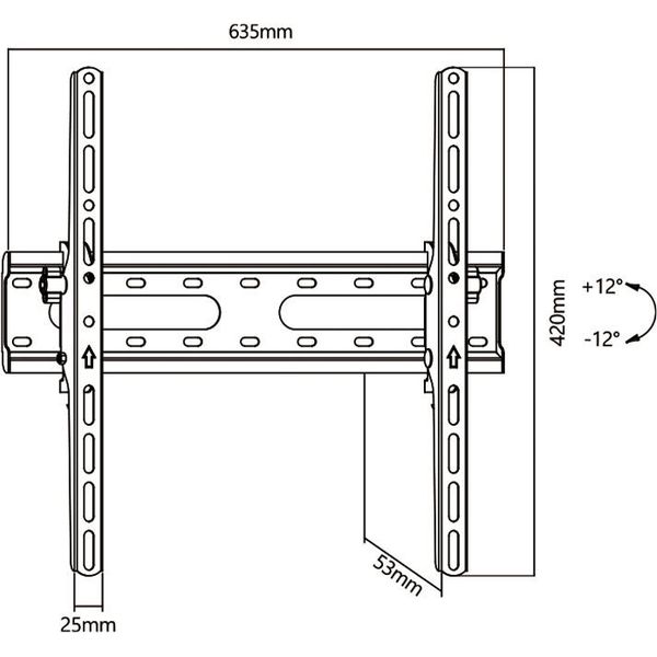 Διαστάσεις VESA: έως 600x400 χιλ. Συμβατά μεγέθη οθόνης: 32 έως 80 ίντσες / 81,28 έως 203,2 cm. Μέγιστο φορτίο: 45 κιλά. Απόσταση από τον τοίχο: 5,3 εκατοστά. Οριζόντια ρύθμιση: - Κάθετη ρύθμιση: +-12 μοίρες γωνία. Στοιχεία: 2. Βραχίονες: - Χρώμα: Μαύρο. Υλικό: Μέταλλο. Διαστάσεις συσκευασίας: Π: 65 cm, Υ: 11 cm, Β: 5 cm. Κωδικός Κατασκευαστή: JL42808 / ELB-3280/TILT. Συσκευασία: Giftbox. Εγγύηση: 2 Χρόνια. DOA 7 ημερών
