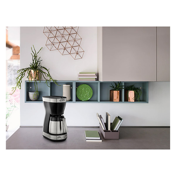 Η εκπληκτική καφετιέρα φίλτρου Delonghi ICM 16710 διαθέτει εξαιρετικό design με προηγμένα χαρακτηριστικά που έχουν σχεδιαστεί για να βελτιώσουν την εμπειρία σας στον καφέ - και να βελτιώσουν τη γεύση του τελικού αποτελέσματος. Χαρακτηριστικά: - Καφετιέρα σε Μαύρο/Inox χρωματισμό. - Εύκολη τοποθέτηση του φίλτρου (σχήμα V) - Αυτόματη λειτουργία stand-by μετά από 40 λεπτά - Ένδειξη στάθμης νερού - Χωρητικότητα 1.25 lt, δηλαδή 10 μεγάλα / 15 μικρά φλυτζάνια. - Aroma function: επιλογή ενίσχυσης αρώματος καφέ - Αποσπώμενη και πλενόμενη βάση φίλτρου. - Στοπ ροής - Ένδειξη λειτουργίας. - Ένδειξη στάθμης νερού. - Γυάλινη καράφα. Ισχύς: 1000 Watt.Χωρητικότητα: 1,25 lt (δηλαδή 10 μεγάλα ή 15 μικρά φλυτζάνια).Χρώμα: Μαύρο/Inox.Εγγύηση: 2 χρόνια.