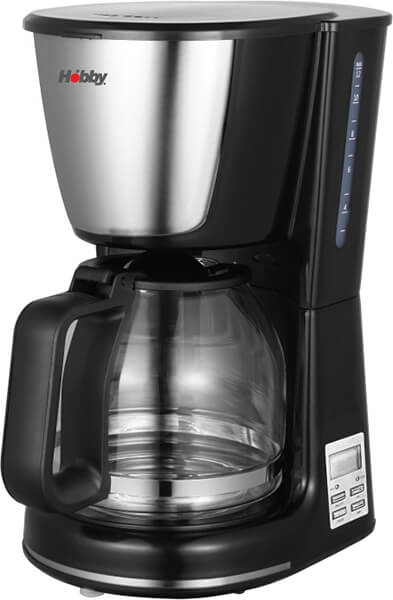 Καφετιέρα φίλτρου της Hobby χωρητικότητας 1.8 λίτρων, το οποίο σημαίνει 12 φλυτζάνια καφέ. Διαθέτει ψηφιακή οθόνη LCD και το φίλτρο είναι αποσπώμενο και πλενόμενο.