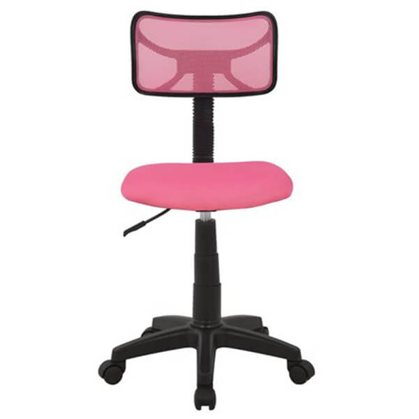 Καρέκλα γραφείου με ροδάκια και αμορτισέρ, χωρίς μπράτσα. -Επένδυση από διάτρητο ύφασμα mesh, ανθεκτικό σε υψηλές θερμοκρασίες και τριβές. -Πλάτη & κάθισμα από ύφασμα mesh αντιιδρωτικό. -Πλάτη ορθοπεδική, ιδανική για μικρά παιδιά. -Με περιστροφή καθίσματος για μεγαλύτερη ελευθερία κινήσεων. -Η καρέκλα ενδείκνυται για παιδικά & εφηβικά γραφεία. Χαρακτηριστικά: Διαστάσεις: 40.5 x 50.5 x 91.5 εκ.Ύψος καρέκλας: 79.5 εκ./91.5 εκ.Ύψος καθίσματος: 41 εκ./54 εκ.Διαστάσεις καθίσματος: 40.5 x 38.5 εκ.Χρώμα: Ροζ.Εγγύηση: 2 χρόνια. DOA 7 ημερών