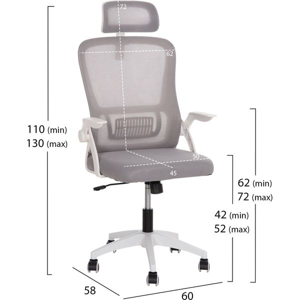 ΚΑΡΕΚΛΑ ΓΡΑΦΕΙΟΥ BLAZER HM1205.02 ΓΚΡΙ MESH-ΛΕΥΚΟΣ ΣΚΕΛΕΤΟΣ 60X58X110-130ΥΕΚ.